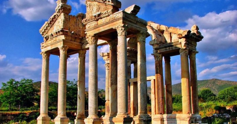YouTube Kanalımıza Abone OlunAydın ili, Karacasu ilçesinde yer alan Afrodisyas, vadi içinde denizden yaklaşık 600 metre yükseklikte kurulmuş. Babadağ’ın eteklerinde yer alan mermer yatakları kentin zenglik kaynaklarından biri olmuş.