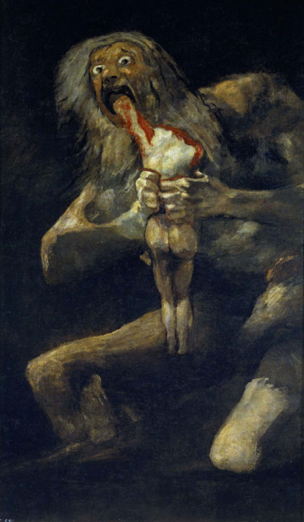 Gök tanrısı Uranos ve yeryüzü tanrıçası Gaia evlenmiş ve çoçukları olmuş. Çoçukları büyüyünce Uranos oğullarından korkmaya başlamış. Onları değişik eziyetler yaparmış. Hatta ünlü İspanyol ressam Goya, Uranos’un bu durumunu resmetmiş. Uranos çocuklarını yerken.
