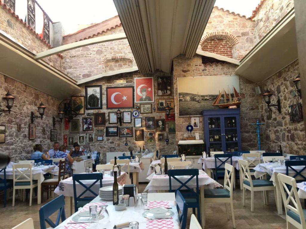 Ayvalık’ın en eski ve en meşhur meyhanelerinden. Yine meze dolabının önünde kendinizi kaybedeceğiniz yerlerden biri. Tenekeciler sokağında bulunuyor. Deniz manzarası yok ama öyle güzel ağırlanıyorsunuz ki insan denizin eksikliğini hissetmiyor. Buraya gitmişken mutlaka karidesli mantı, isli midye ve sıcak ot denemeniz gerekiyor. Pişman etmeyecek lezzetler. Bunların dışındaki tüm meze, ara sıcak ve deniz ürünlerini de gözünüz kapalı sipariş edebilirsiniz. Rezervasyonsuz gitmeyi denemeyin hatta tatil programınız belli olduğunda ilk fırsatta arayıp mutlaka rezervasyon işini halledin.