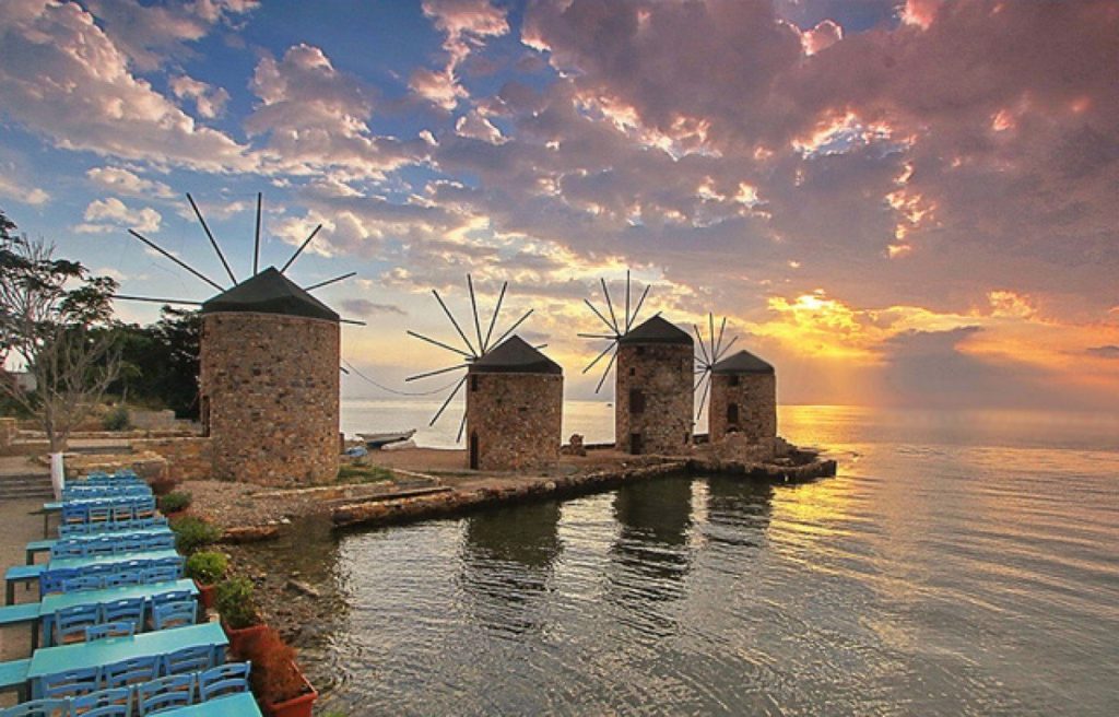 Alaçatı’ya yolunuz düşmüşken pas geçmemeniz gereken yerlerden birisi de Alaçatı’ya simge olmuş yel değirmenleri. Özellikle son zamanlarda fotoğraf çekimleri için doğal bir stüdyo olarak kullanılan yel değirmenleri eski zamanlarda buğdayı öğütmek için kullanılırmış. Günümüzde tamamen turistik bir ziyaret noktası olan Alaçatı yel değirmenlerinde siz de minik bir mola verebilir, isterseniz bu molanızı Alaçatı’nın ünlü damla sakızlı kahvesi ile ödüllendirebilirsiniz.