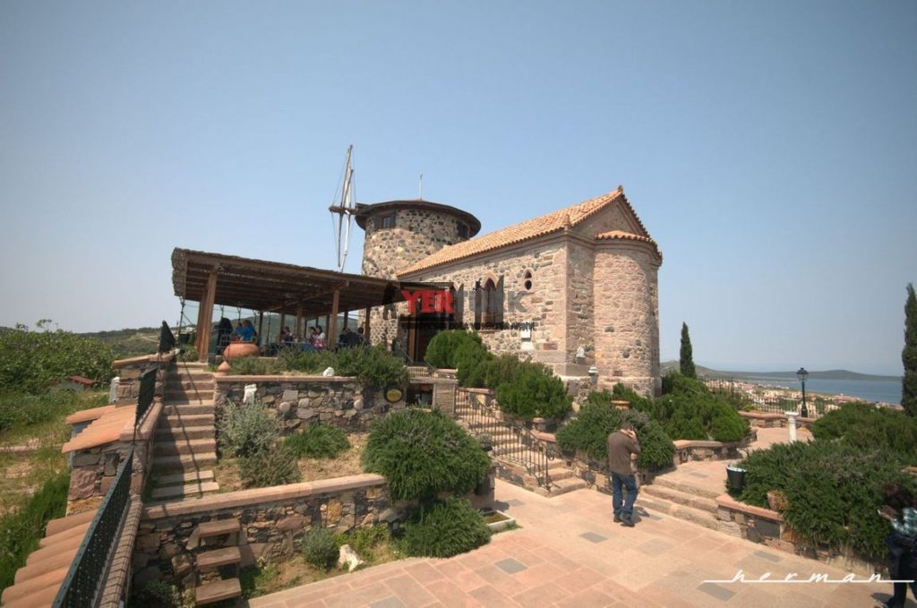 Burası yerel halkın Aşıklar Tepesi adını verdiği alanda yer alıyor. Çok uzun yıllar önce Edremitli iki keşiş bu tepeyi keşfetmiş ve burada bir kilise yapmaya başlamışlar. Bu kiliseyi de St John’a bizim dilimizde de Aziz Yahya’ya atfetmişler. İşte burası Agios Yannis kilisesi. Kilise ve şapeli mübadele döneminde terk edilince, burası bakımsız kalmış. 1944’teki depremde de ciddi anlamda hasar görmüş. Uzun süre kimse ilgilenmemiş ama artık kilise harap hale gelmeye başlayınca Rahmi Koç Vakfı buraya el atmış ve himayesi altına alarak restore etmiş. Agios Yannis Kilisesi ve değirmen 1989 yılında birinci dereceden sit alanı (arkeolojik) ilan edilmiş. 1997’den bu yana da Koç Müzesi’ne bağlı bir müze olarak faaliyet gösteriyor.
