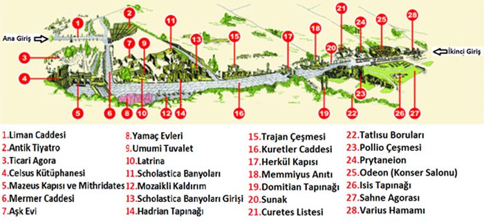 Yamaç Evler: Efes’in elit kesiminin yaşadığı lüks evler. Mozaik zeminler, duvar freskleri hâlâ yerinde.