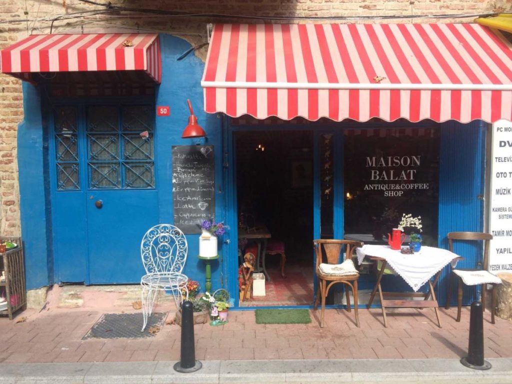 Balat’ta hem antikaları görebileceğiniz hem de kahvaltı yapabileceğiniz yerlerden biri de Maison Balat. Burası küçük ve dopdolu bir antika dükkanı. Lezzetli tatlıları ve sıcacık kahveleri var Ayrıca pazar günleri kahvaltı servisleri de mevcut ama öncesinde mutlaka rezervasyon yaptırmanız gerek çünkü yerleri oldukça kısıtlı. Fiyatlar da bölgedeki kafelere göre biraz yüksek, benden söylemesi.