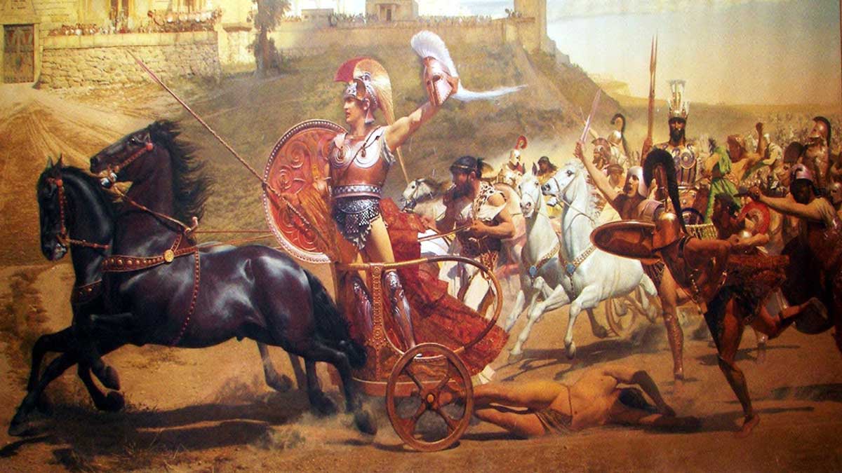 İki ordu arasında savaş yeniden başlarken, Paris’in kardeşi Hektor, savaşın Paris’in Sparta Kralı Menelaos’un karısı Helen’i kaçırması olduğunu ileri sürerek Paris ile Menelaos arasında dövüşle çözümlenmesini önermiş. Bu dövüşte tam Paris yenilecekken, annesi olan tanrıça Afrodit onu son anda kaçırarak kurtarmış. Böylece ordular arasında bir kez daha savaş başlamış.