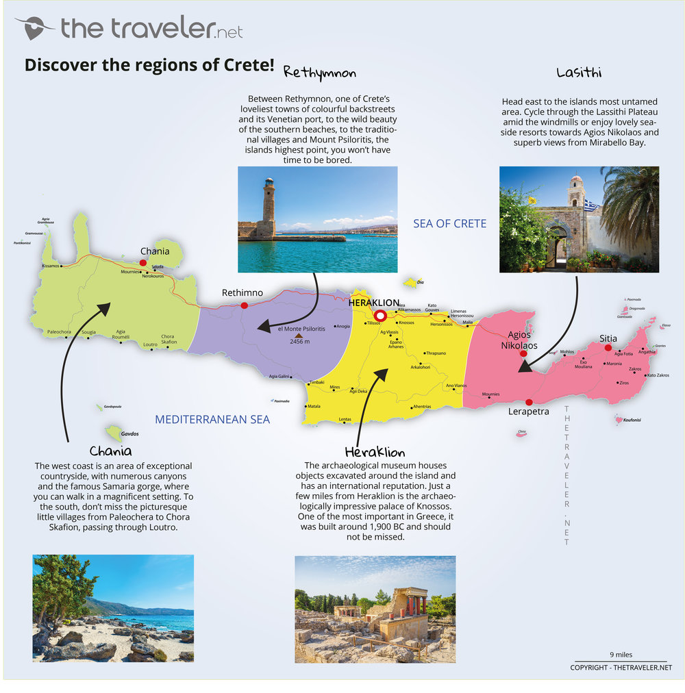 Uçakla: Yunanistan’ın başkenti Atina’dan veya diğer büyük şehirlerden Kandiye’ye direkt uçuşlar bulunmakta. Kandiye Uluslararası Havalimanı (HER) adaya gelen ziyaretçiler için ana giriş noktası. Havalimanından şehir merkezine taksi, otobüs veya araç kiralama ile ulaşım sağlanabilir.