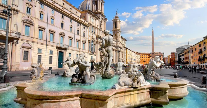 Meydanda yer alan 3 çeşmenin en ünlüsü ise Bernini tarafından tasarlanan Dört Nehir Çeşmesi. Çeşmenin hemen arkasında Sant Agnese in Agone Kilisesi yer alıyor. Roma’nın en ünlü kiliselerinden olan San Luigi dei Francesi ise hemen binaların arkasında yer alıyor. Navona Meydanı’nın etrafında yer alan binaların çoğu ise 16 ve 17. yüzyıllardan kalmadır.