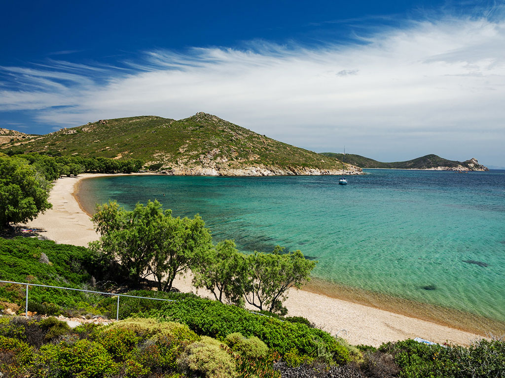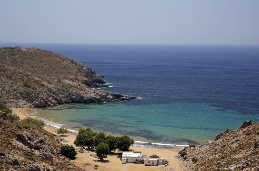 Adanın güneyinde yer alan bu koy, sakin ve korunaklı suları ile ünlü. Grikos köyü, sahil boyunca sıralanan taverna ve kafeleriyle rahat bir atmosfer sunuor. Koyda yüzme, şnorkelle dalış yapma ve güneşlenme gibi aktiviteler yapabilirsiniz.