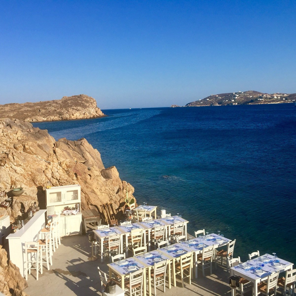 Kyma: Patmos’un bir diğer seçkin restoranı olan Kyma, denizin hemen kenarında, sade ama şık bir ortamda hizmet veriyor.