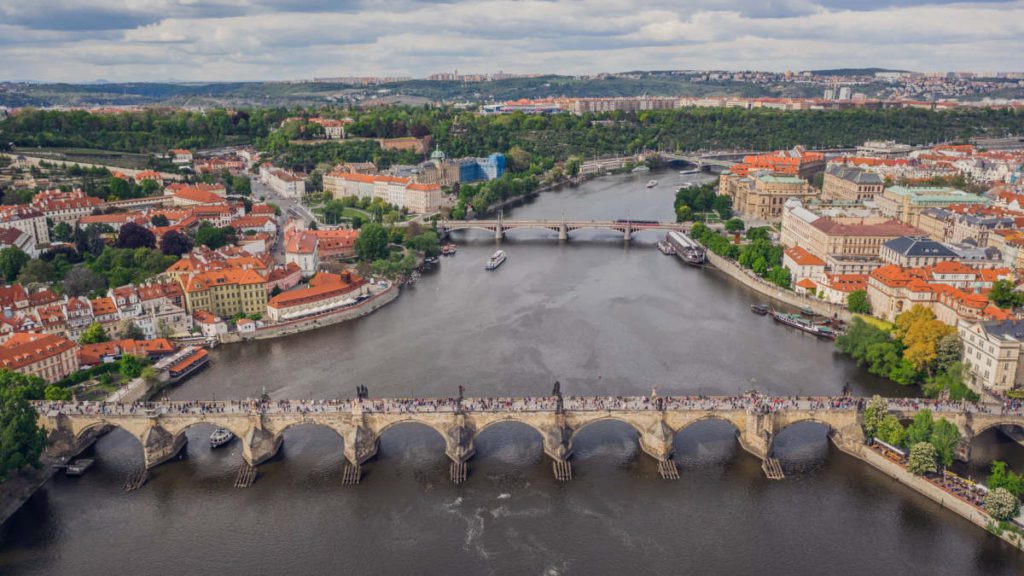 Charles Köprüsü dışında Vltava’nın birbirini takip eden köprüleri ve değişen manzaralarıyla dolambaçlı bir rotası var. Prag’ın sol yakasına yüksek duvarların arkasından hakim olan büyük Hradcany Kalesi’nin (Prag Kalesi) her zaman varolan fonuyla tezat oluşturuyor.