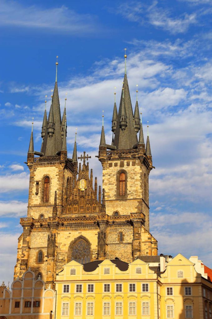 Prag’daki en etkileyici Gotik dini yapılardan biri Tyn Kilisesi. Yapımına 14. yüzyılın ortalarında başlanmış ve 16. yüzyılın başlarına kadar devam etmiş.. 17. yüzyılın sonunda, iç mekan Barok tarzında yeniden işlenmiş. 80 metre yüksekliğindeki ikiz kulelerin isimleri; Adem ve Havva. Katedral, Gotik, Rönesans ve Erken Barok