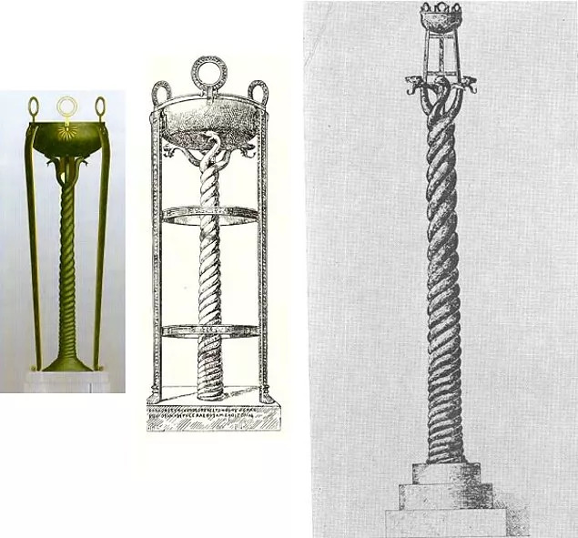 MÖ 479 yılında 31 Yunan şehir devleti, Perslere karşı kazandıkları zaferin anısına Delfi’deki (Yunanistan’da bir kasaba) Apollo tapınağına dikmiş bu eseri. Savaş sonrası elde ettikleri bronzları eriterek 3 başlı yılanın Tanrı Apollon tarafından öldürüşünü anlatıldığı heykelleri yapmışlar. Persleri, heykeldeki 3 başlı yılana benzetmişler.